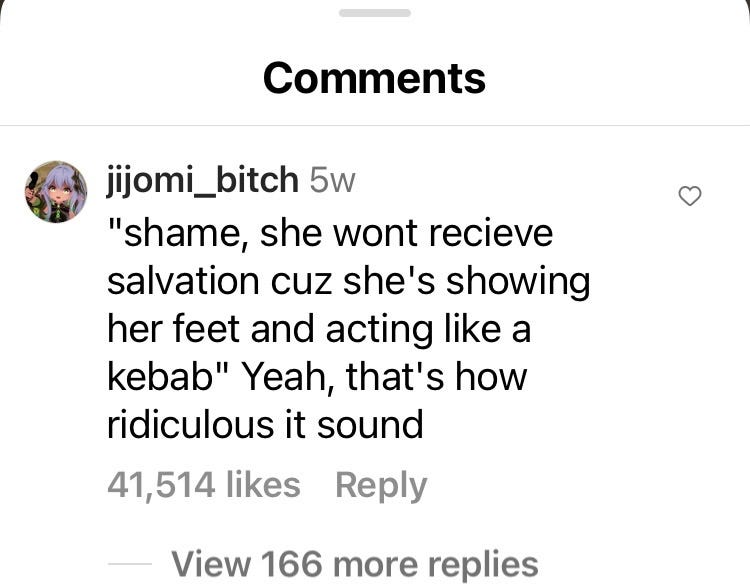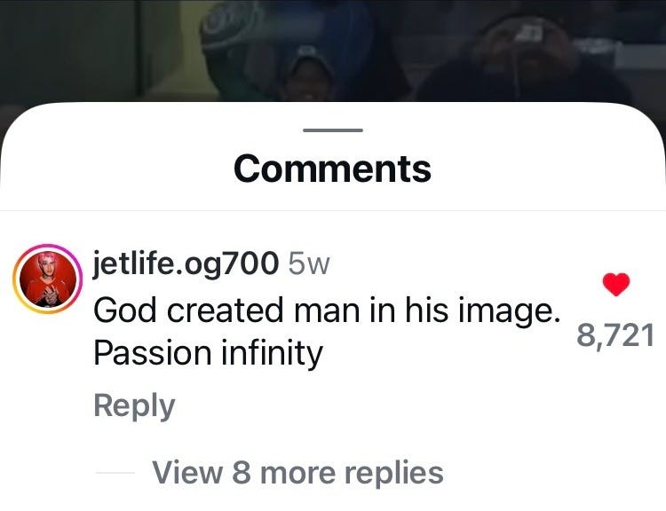 By far the most interesting internetjunk that I have accumulated are from the comments section on Instagram, Tiktok, YouTube and the like. I now present a collection of them for your consideration, below: